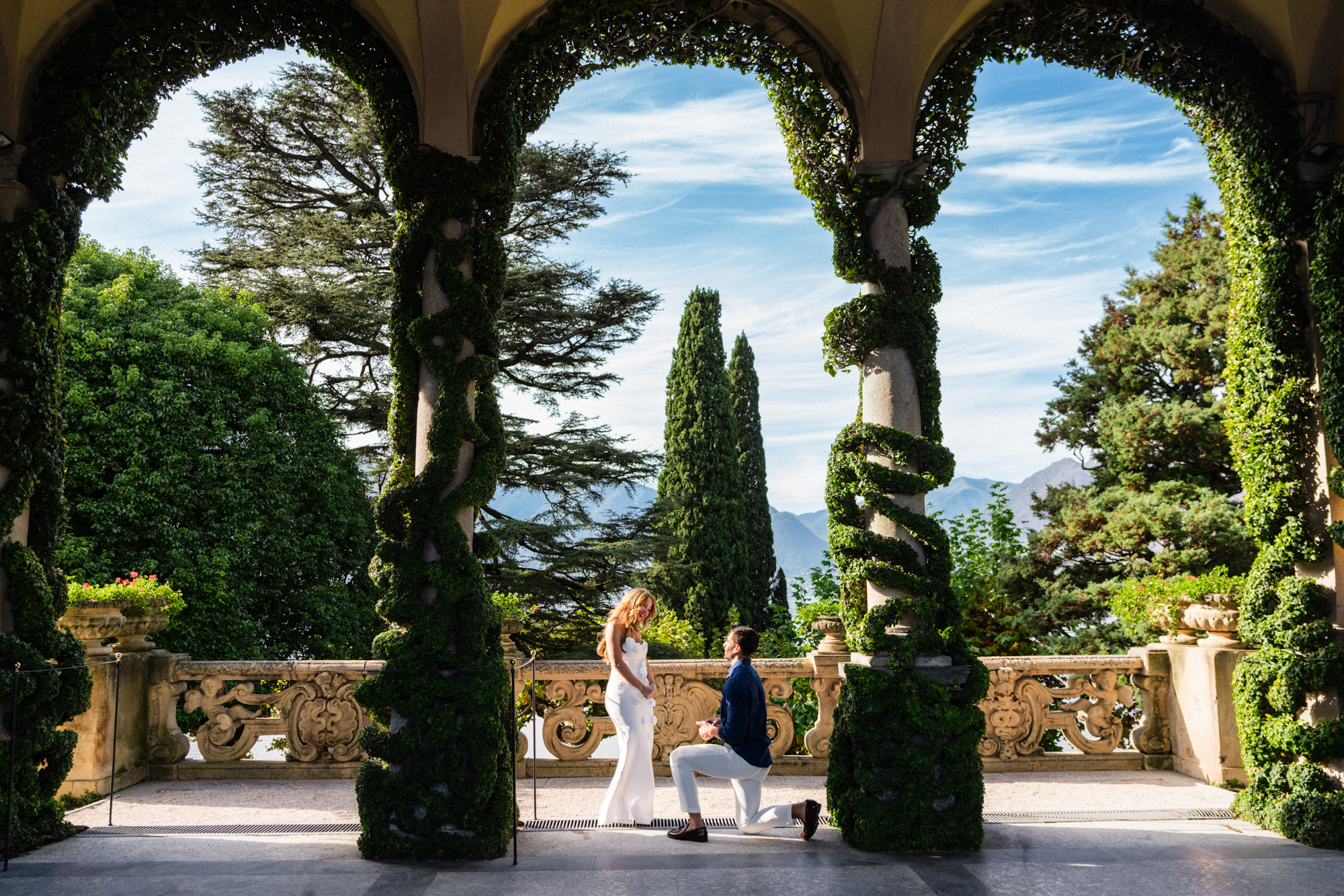Elopement at Lake Como, with the famous Villa del Balbianello in the background.